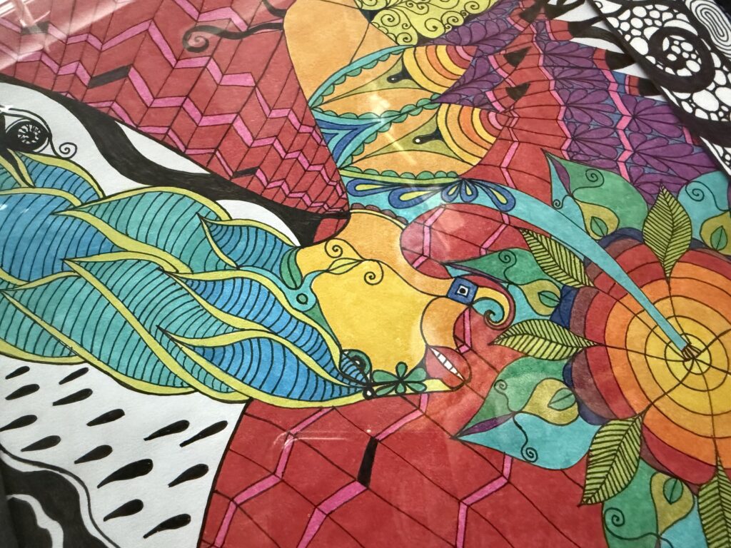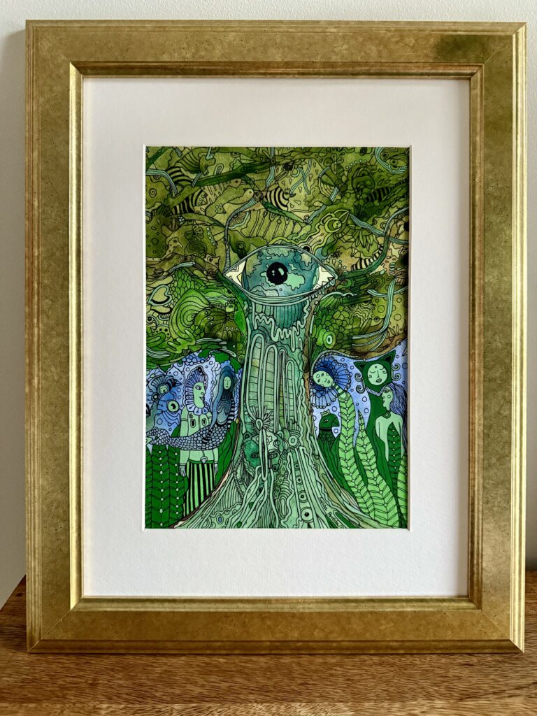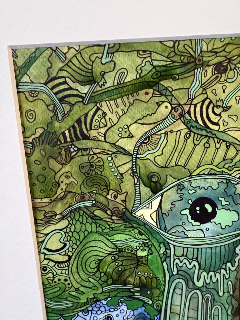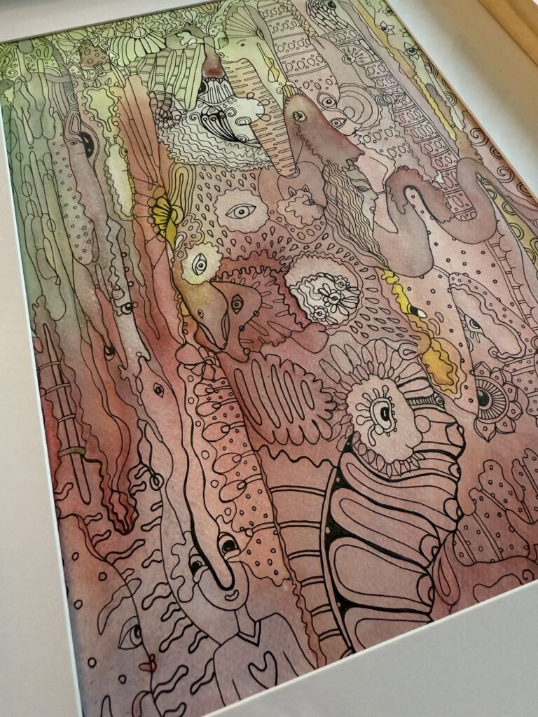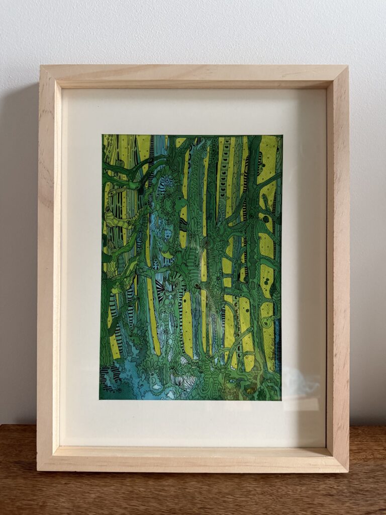 Ink and promarkers on paper, plus passpartout and frame